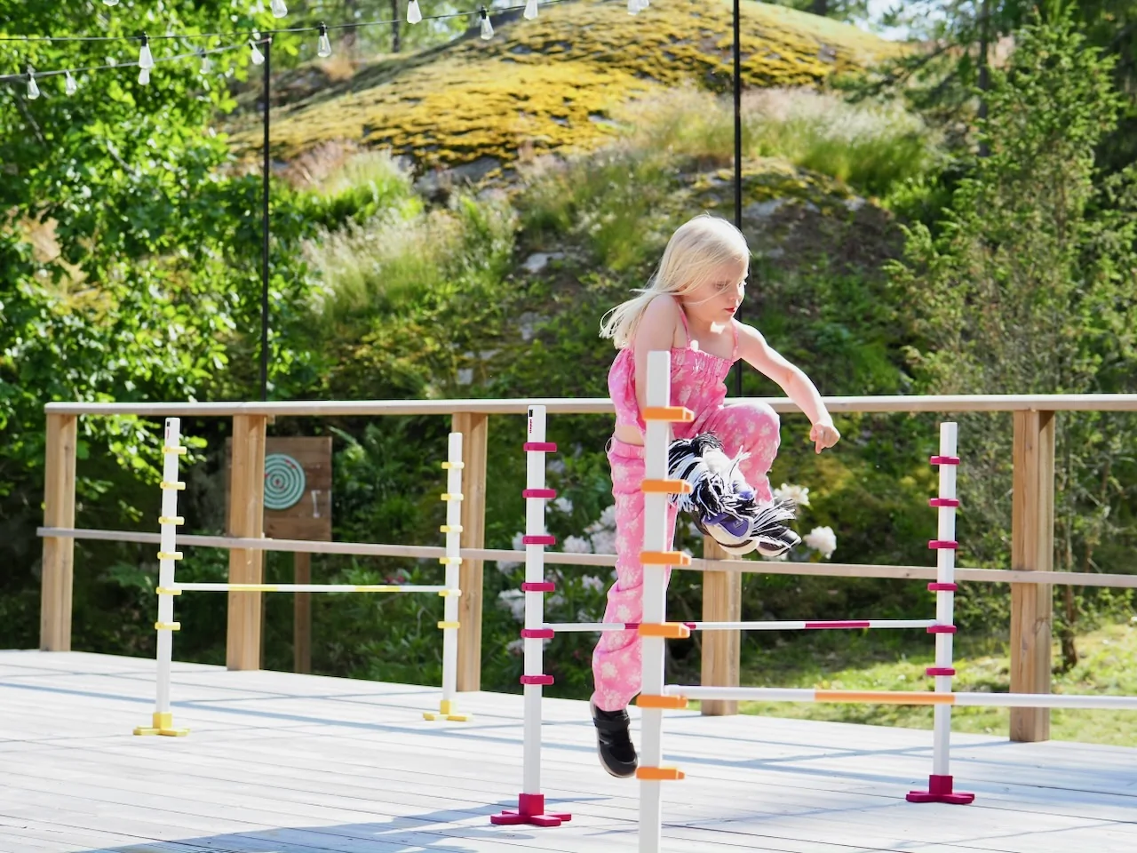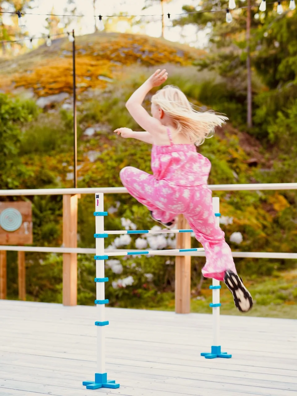 Monipuolinen, turvallinen ja kaunis este lapsen liikuntaleikkeihin.